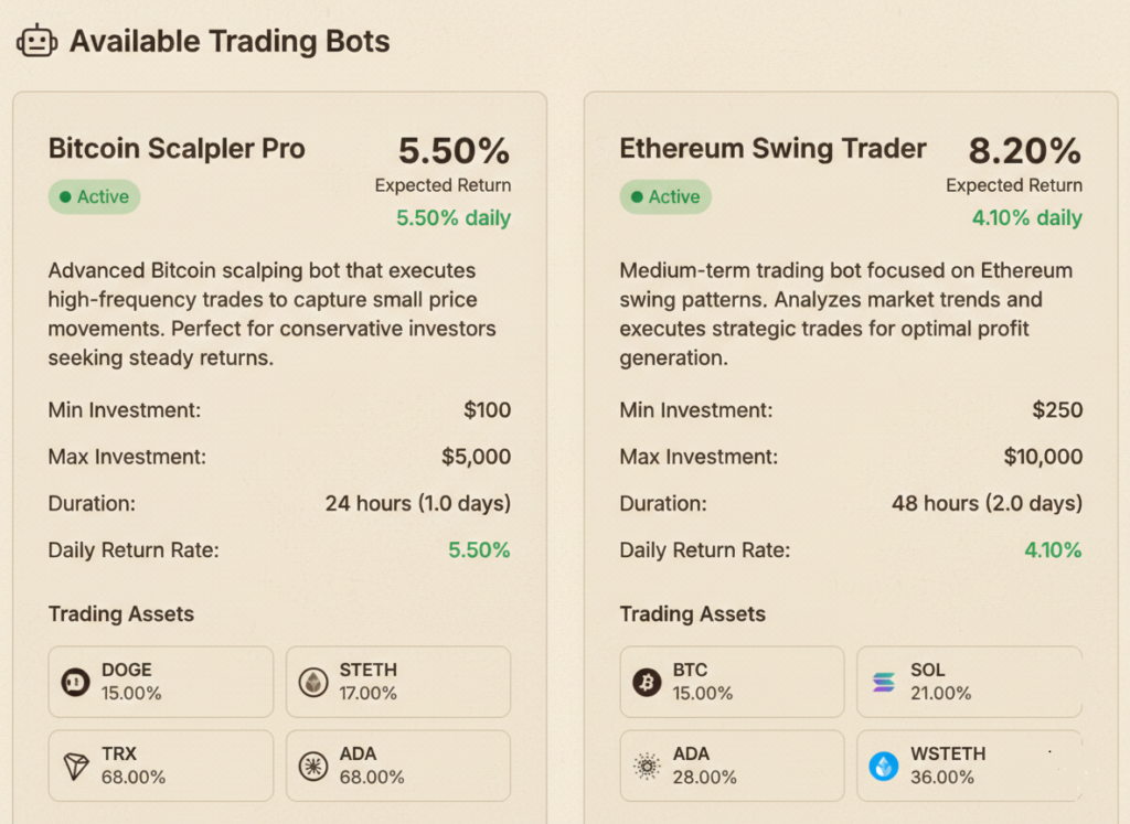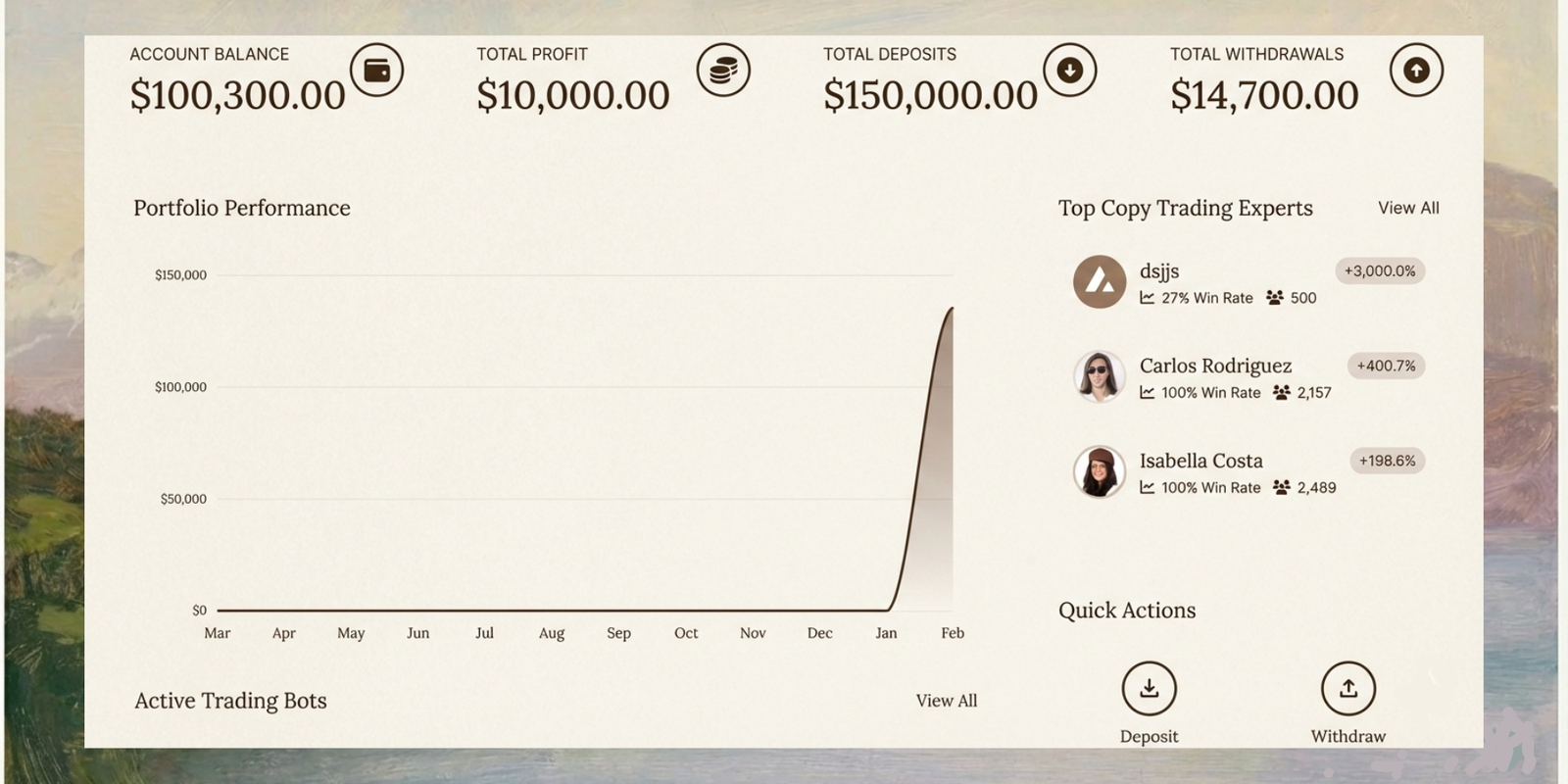 Our AI-powered trading engine identifies opportunities in real time and executes strategies designed to grow your wealth consistently.